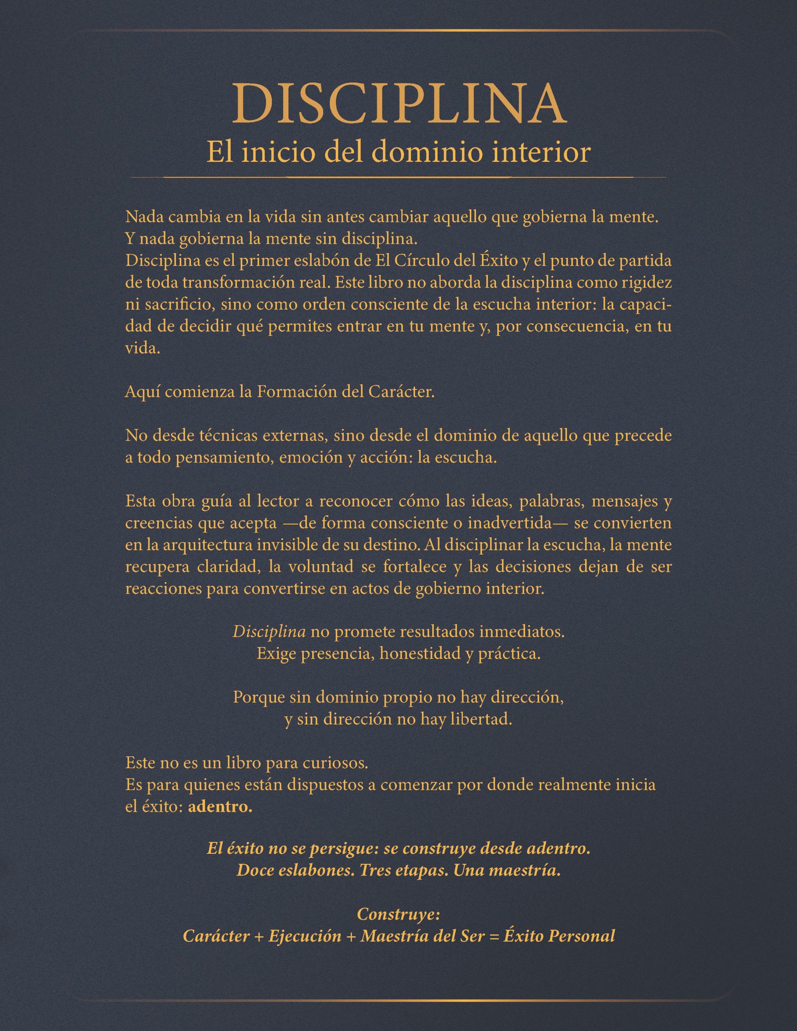 el dominio de la conciencia y la responsabilidad personal como fundamentos reales del éxito.